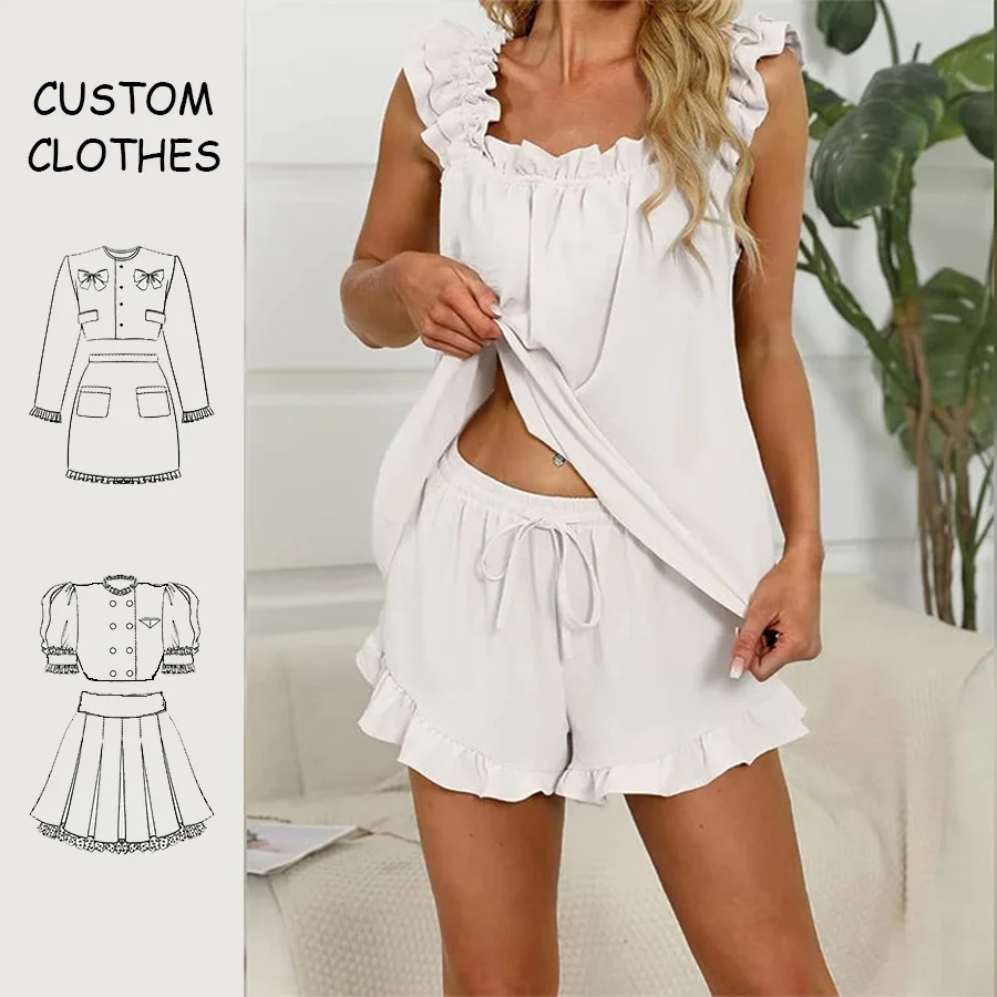 Custom Loungewear Women Sets Custom logo 2 Piece Women Sample OEM Two Piece Shorts Casual 100% Cotton Women's Loungewear Sets